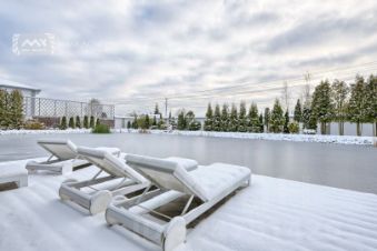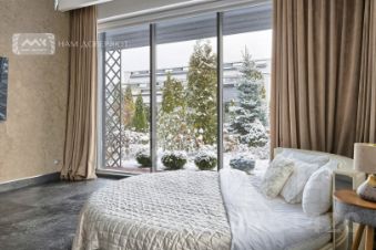Дом выполнен исключительно из высококачественных материалов и оснащён премиальной техникой и мебелью высочайшего класса.