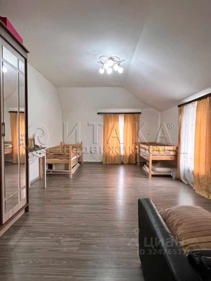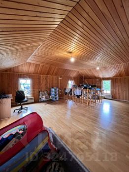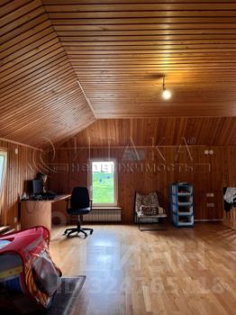 Второй этаж - мансардный, пол- ламинат , стены гипрок под покраску и обои, холл обшит вагонкой. Большой холл 47 кв.м и две изолированные спальные комнаты 19,6+19,9 кв.м.