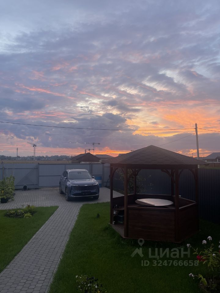 Парковочное место на два автомобиля дорожка к дому и перед домом выложено брусчаткой.