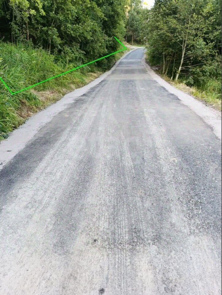 Граница с асфальтированной дорогой в нижней части участка 8 метров.