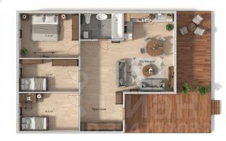 * 3 отдельные спальни (13 м², 11 м², 9 м²) — у каждого члена семьи свой угол.