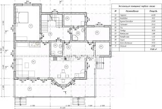Здание двухэтажное с мансардным жилым этажом, размером 14,9х15,4 м. Дом имеет оригинальную форму и многоскатную крышу с уклоном 30, что придает ему уникальный внешний вид.