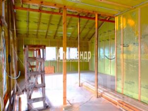 Дом построен по каркасной технологии с толщиной стен 250 мм, что обеспечивает надежность и отличную теплоизоляцию. Внешняя отделка имитация бруса с вентилируемым фасадом и дополнительным утеплением.
