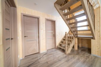 В доме 4 спальни: 3 на втором этаже и одна на первом. И два сан узла: большая ванная комната на первом этаже и сан узел на втором.