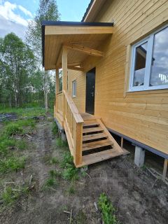 Снаружи и внутри обшит имитацией бруса, которую можно покрасить по своему вкусу.