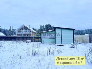 На участке расположен небольшой летний каркасный дом 3х6 с верандой 3х3, снаружи обшит сайдингом, внутри - вагонкой.
