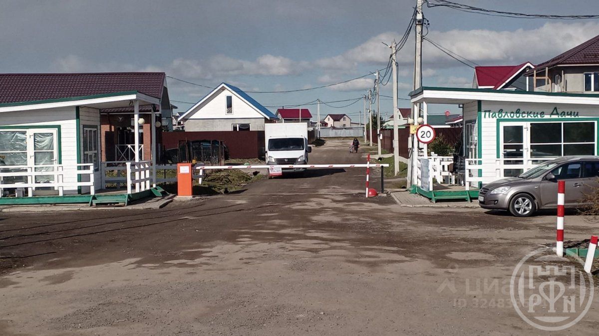 Охраняемый поселок, с действующим шлагбаумом.