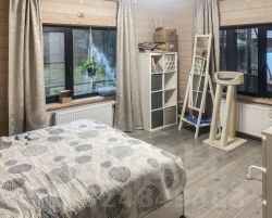 Дом 191 м² из клееного бруса 180мм с панорамными окнами, вторым светом, дизайнерской отделкой и качественной мебелью. Алюминиевые окна, камин, стена с подсветкой из натурального оникса как в Мариинке. Никаких просадок, тк до построен в 2018 году — только преимущества деревянного дома без хлопот.