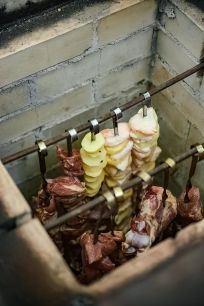 - мангальная зона с тандыром, костровой чашей и запасом дров на год.