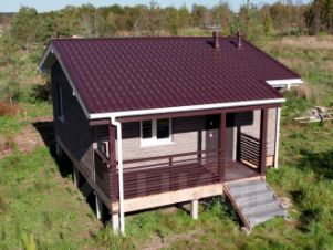 По планировке: терраса, тамбур, кухня, гостиная, две комнаты и санузел.