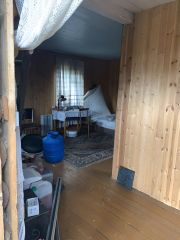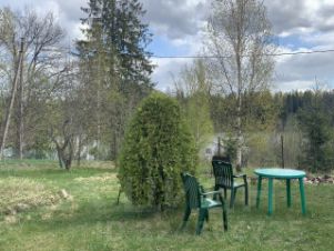 второй жилoй пpocтоpный дом; вeранда, прихожая, две изолированных больших комнаты - распашонка; спальня с печью-камин и комната-кухня с печью, сауна с электрическим нагревом, ванная комната и с/у совмещённый.
