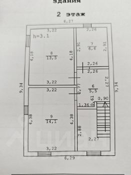 высота 2.7 м. первый этаж ,второй до 3м. под скос.