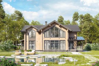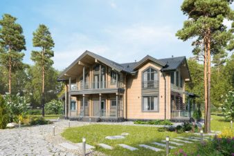 — Материал: премиальный клееный брус "Статус" (210410 мм) собственного производства — тёплый, надёжный и эстетичный.