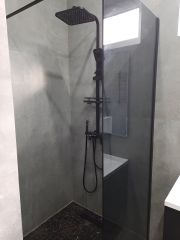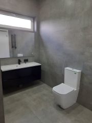 - Санузел в керамограните, оборудован сантехникой, бойлером, раковиной, зеркалом с подсветкой, душевой системой.