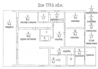 Кухня-гостиная - 36,8 кв.м., Мастер спальня с личным санузлом - 16,4 кв.м.плюс 4,7 кв.м., комнаты - 13,4 + 14,2 кв.м., общий санузел - 6,1 кв.м., большая прихожая, в наличии кладовая, гардеробная, котельная. Терраса метражом 14,6 кв.м.