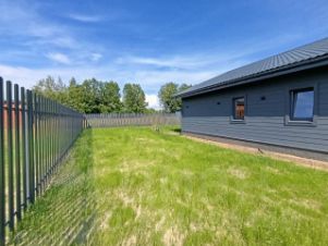 По периметру дома сделан дренаж. Участок огорожен забором из металлического штакетника. Установлены откатные ворота с электроприводом. Сделана отдельно стоящая калитка. Укреплен заезд.