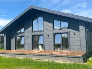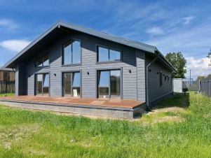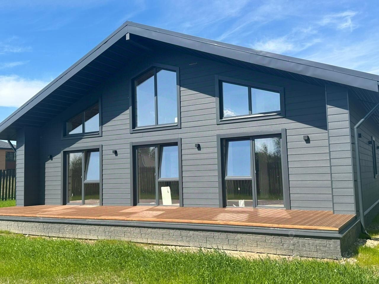Фасад покрыт фиброцементной панелью.