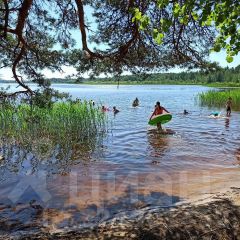 Выход к озеру Орлинское с песчаным пляжем и ароматным сосновым лесом.