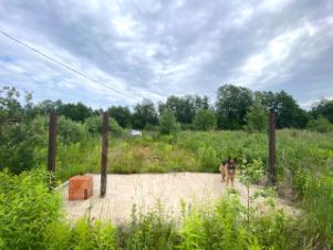 Электричество 15 кВт, колодец, септик. Сделан бетонный заезд на участок, основы для установки ворот.