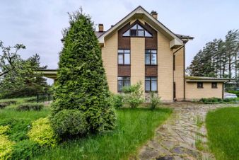 Красивейший участок с ландшафтным дизайном, с хвойными и лиственными деревьями, полянкой для прогулок и детской площадкой.