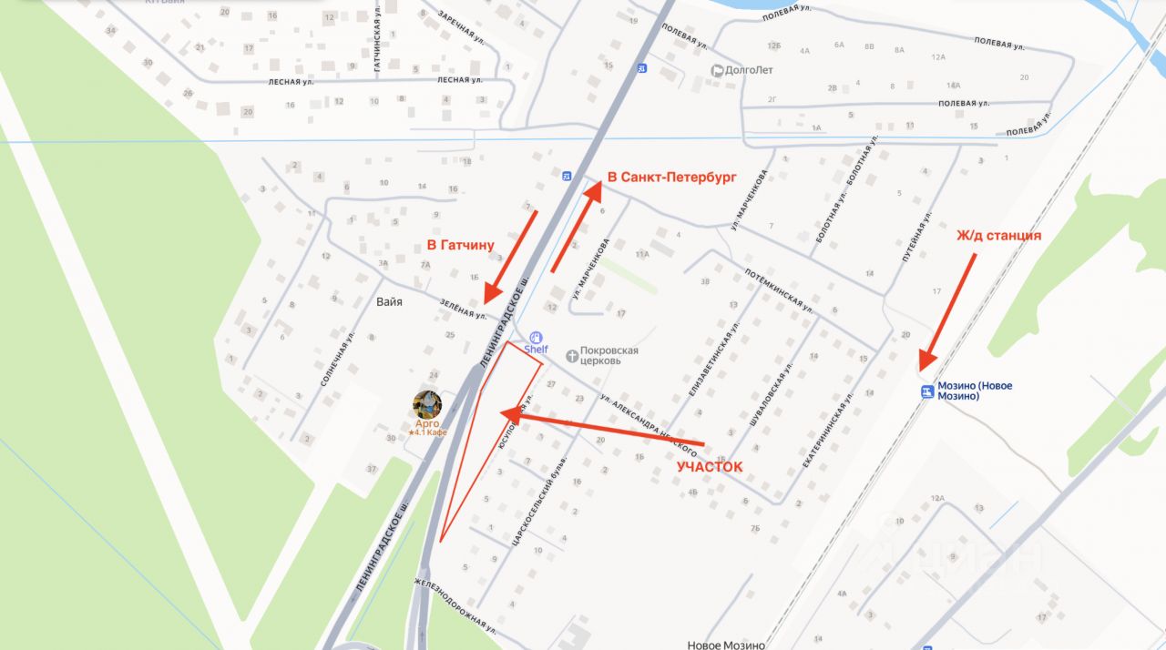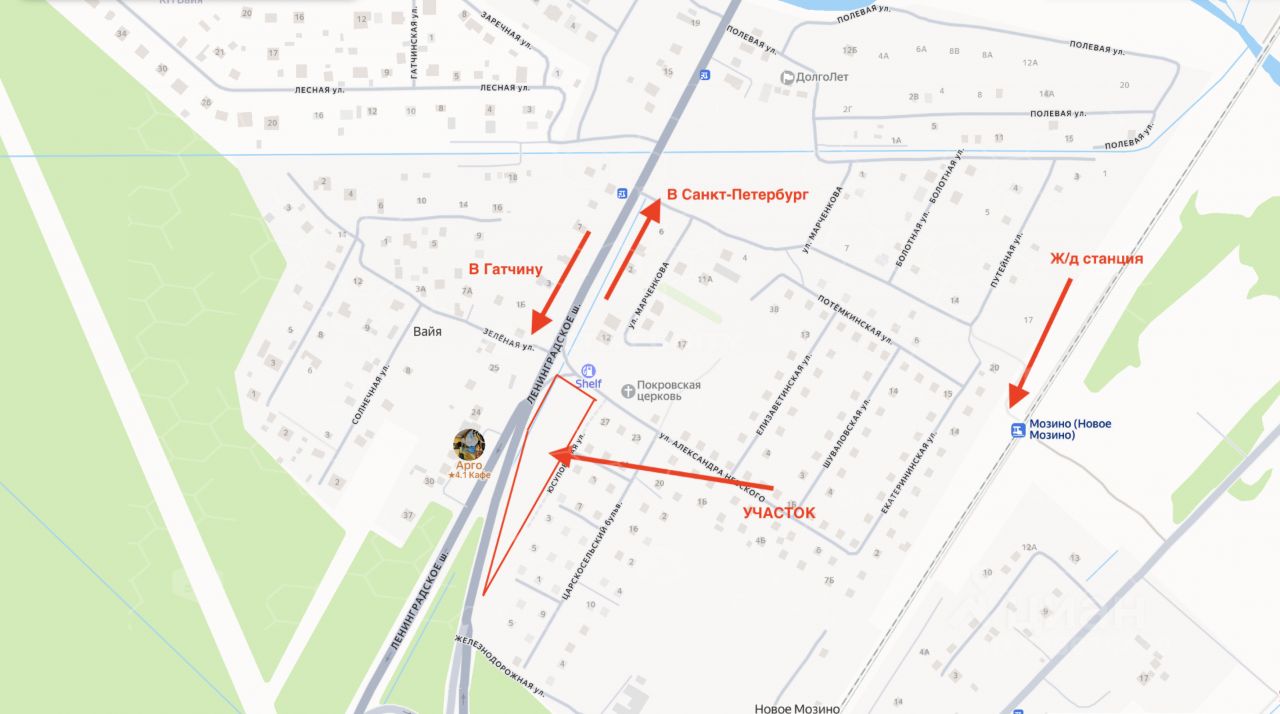 Рядом с участком находится коттеджный поселок Гатчинские Поместья, через дорогу другой коттеджный поселок "Вайя",