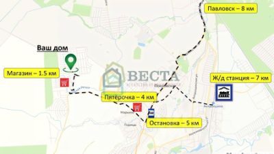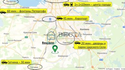 В 5 км находятся школа, детский сад, сетевые магазины, и вся необходимая инфраструктура г. Коммунар. Ближайший продуктовый магазин - в соседнем посёлке. Всего в 10-15 минутах на автомобиле - исторические места, парки и дворцы г. Пушкина и г. Павловска. Удобный выезд без пробок на Киевское шоссе через г. Гатчину и п. Кондакопшино (через шлагбаум).