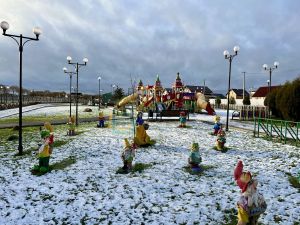 Посёлок: давно заселён, многие живут круглогодично. Есть большие детские и спортивные площадки, наружное освещение, прогулочные дорожки со скамейками вдоль ручья.