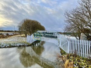 Участок 7,62 сотки огорожен забором из евроштакетника, правильной формы.