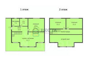 Душа дома - это просторная кухня-гостиная с панорамными окнами и вторым светом, площадью 51,7 кв.м. Одна спальня 27 кв.м. на первом этаже + две спальни по21 кв.м. на втором этаже. Один санузел и тех.помещение.