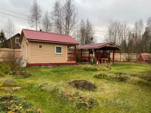 Также есть баня 24 кв.м. + терраса 1,5 кв.м. 2012 года постройки. Тоже из бруса, крыша металлочерепица, Стены помещения окрашены специализированной краской для бань. В помывочной сделан теплый пол, покрытие плитка. Баня дровяная.