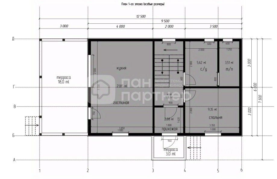 В доме большая кухня гостиная с выходом на террасу, 4 отдельные спальни, с\у на каждом этаже, Комната тех. назначения.