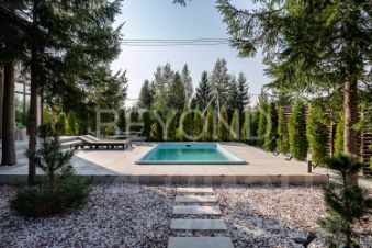 Продается новый загородный дом 203 кв. м на участке 11,5 кв. м в закрытом котеджном поселке "Савоя". На участке подогреваемый бассейн под открытым небом, выполнены все ландшафтные работы, вымощены дорожки, сделано освещение как на участке, так и на фасаде дома.