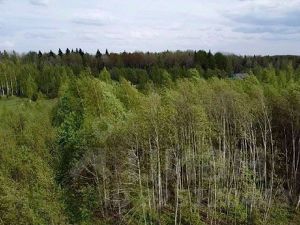 Участок сухой, находится на возвышенности, граничит с лесом и одним соседом.