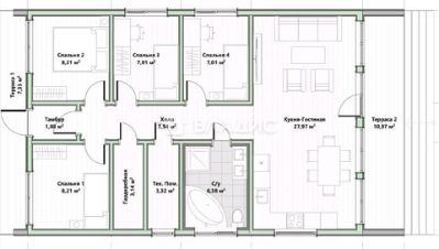 Простор и комфорт: общая площадь 106,4 кв. м, жилая — 55,44 кв. м, 4 комнаты и кухня-гостинная, две из которых можно использовать как детские. Развитая инфраструктура: дом подключён к центральным коммуникациям, есть электричество, водоснабжение, газ, септик.