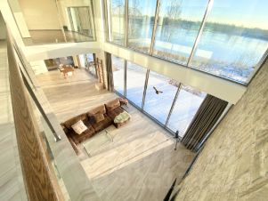Эксклюзивный загородный дом прямо на берегу Невы, выполнен с большим панорамным остеклением. Практически из любой точки дома можно наблюдать Неву и проходящие по ней корабли (летом), а зимой ледоход и проплывающие по реке льдины - завораживающее зрелище.