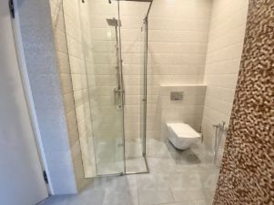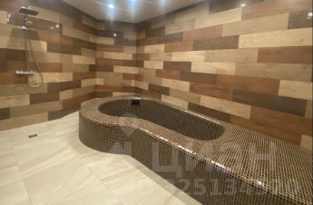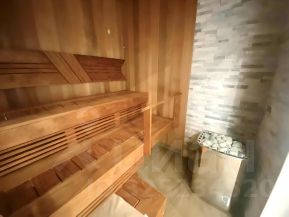 Здесь же русская парная со стеклянной стеной и прохладной купелью в которой можно лежать.