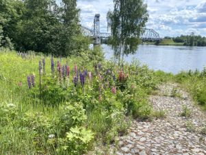 До полотна реки 50 метров. Очень уловистое место по мнению местных рыболовов прямо рядом с домом и просматривается из окон. Проверено. В сторону Невы сделаны ворота для спуска катера или яхты и из крупного гравия утрамбована пологая дорожка прямо до воды.