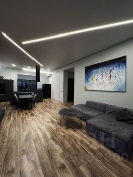 Кухня-гостиная с островом 52 кв.м, при потолках 4 метра ощущается очень просторной и огромной, также есть выход на терассу/