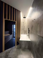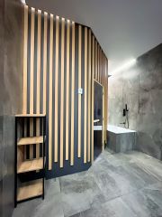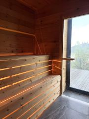 Просторная Сауна до 6 человек с выходом на терассу, можно нырнуть в снег, прыгнуть в бассейн)