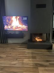 Дровяной трехсторонний камин с плавным подъемным механизмом, тв 65,