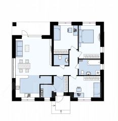 Представляем вашему вниманию коттедж, являющийся достойной альтернативой городской квартире, но с собственным земельным участком, парковочной зоной, гостиной с панорамным окном и террасой. Одноэтажная планировка, тщательно продуманная с учётом пожеланий наших клиентов, обеспечивает рациональное использование каждого квадратного метра.