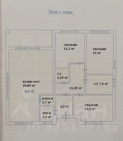 В доме три спальни (12.8м² + 11.8м² + 10.7м²). Два отдельных санузла, площадью 2,23м² и 7.4м², повысят комфорт проживания. .