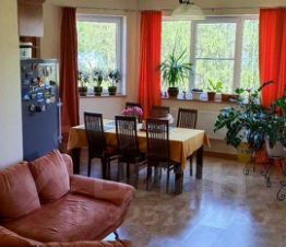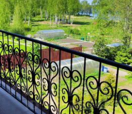 Все отделочные материалы использовались импортные, полы пробковые - тепло и шумоизоляция, приятно ходить босиком. Кухня открытая, просторная, мебель кухонных шкафов из массива берёзы, имеется посудомоечная машина, электрическая плита. Из кухни открывается вид на ухоженную территорию сада и водную гладь Сайменского канала. В вечернее время, сидя за столом можно наблюдать проходящие корабли и яхты.
