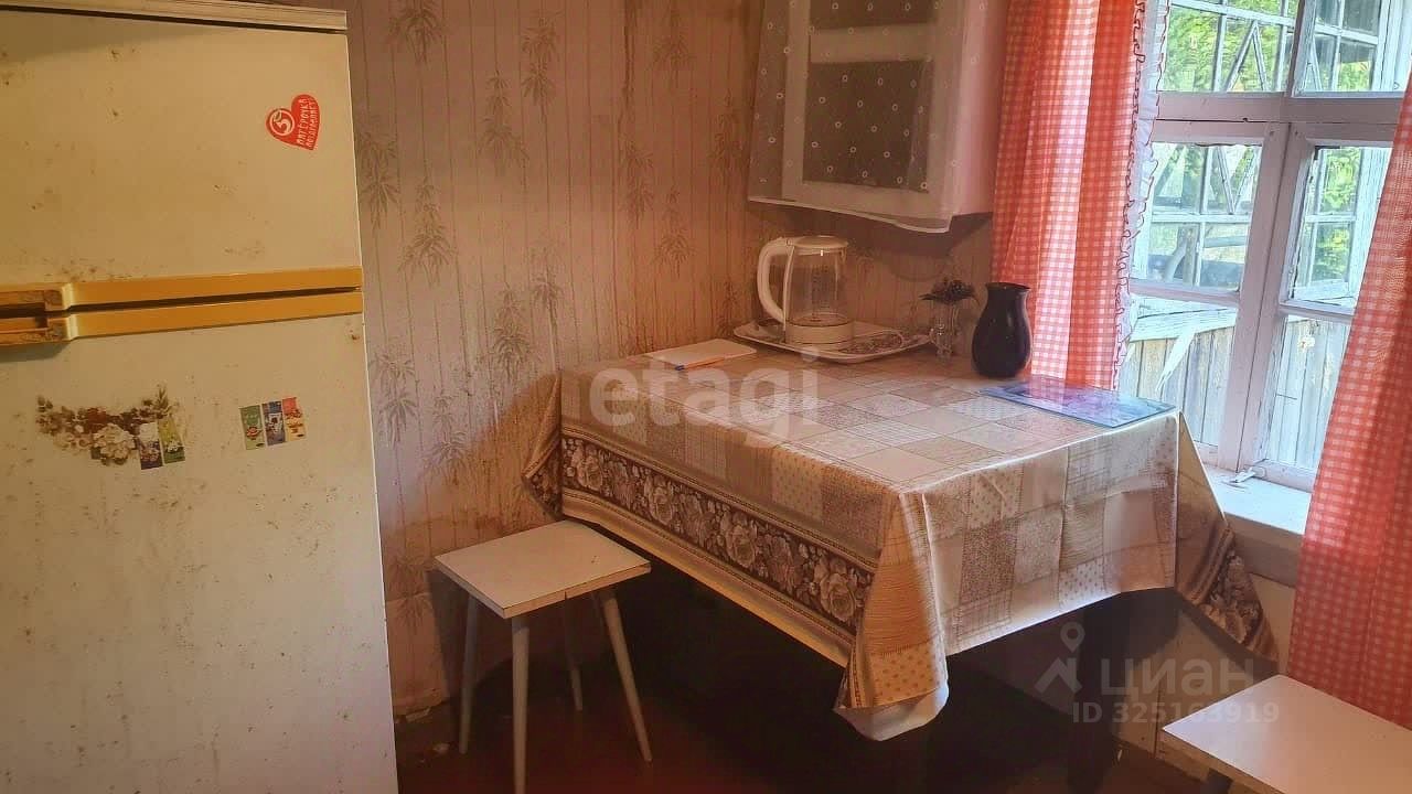 В поселке с развитой инфраструктурой продается 1/2 доли жилого дома с пропиской. Дом имеет два входа для двух семей. Построен из моченого бревна давно, но будет стоять века. На первом этаже коридор, кухня, маленькая верандочка, просторная комната. Отапливается кирпичной печью. К дому примыкает дворовое помещение и сарай. Там же находится и туалет. Второй этаж - чердак, можно отремонтировать по своему усмотрению. На участке растут плодовые кустарники и яблони с очень вкусными красными яблоками. Колодец с питьевой водой в 50 шагах от участка. По улице проведен газ. Дорога до самого дома асфальт.