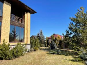 Участок рельефный, ухожен, выложен камнем, на участке небольшой гостевой дом, много деревьев (сосны, ели, туи).