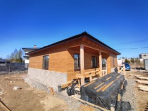 В доме уже выровнены стены (утеплитель 150мм ) кровля 200мм, проведено электричество и подключены теплые полы. Выполнено благоустройство участка.