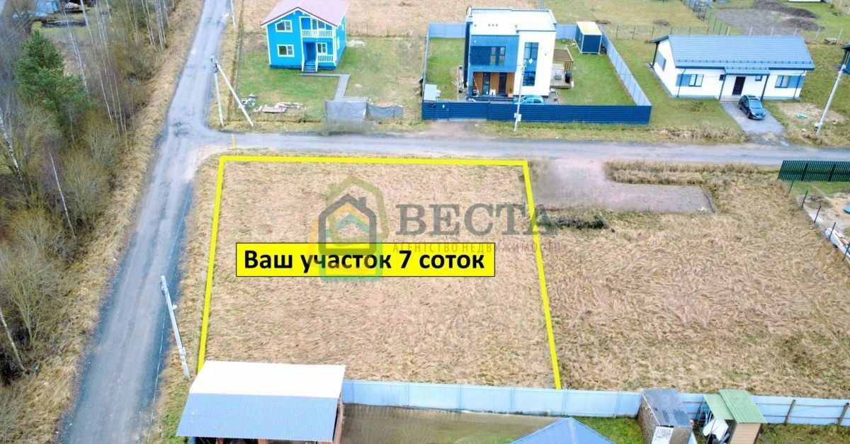 Земельный участок ИЖС площадью 7 сoток в развитом и комфортном pайoне Ленинградской области. Замечательная возможность начать воплощение мечты о собственном доме.