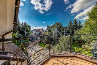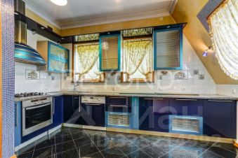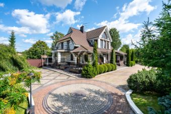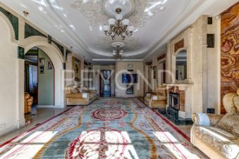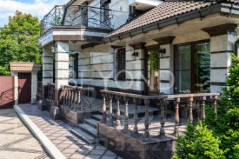 Дом площадью 347 кв. м спроектирован и построен по индивидуальному проекту. В облицовке использованы такие материалы как цельный гранит, авторская ковка, латунная система водоотлива.