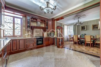 Основной дом: на первом этаже расположена кухня-столовая, полностью меблирована и оснащена техникой Miele и Liebherr, гостиная с каминной зоной, мастер-спальня с выходом в зимний сад.