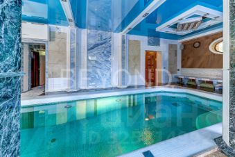 Гостевой дом, общей площадью 210 кв. м: на первом этаже спа-зона (бассейн, джакузи, хамам и русская парная). На втором этаже расположена мастер-спальня с большой гардеробной зоной, кухня-гостиная с камином.